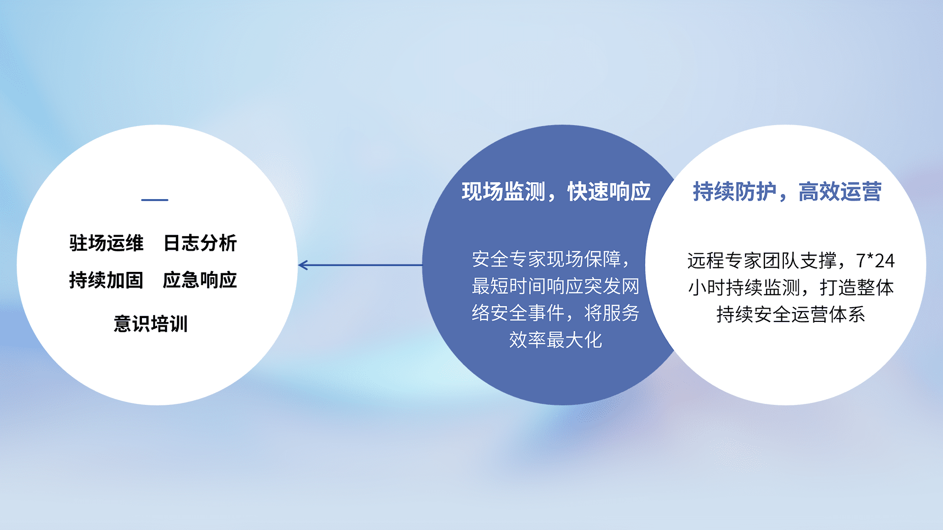 针对客户行业特性,,,提供专属的一站式安全管理服务,,,,帮助客户全面感知网络空间威胁,,,,通过安全专家的线上、、、线下防护支持,,,实现风险闭环,,将安全保障常态化,,,,为客户打造常态化安全运维运营服务。。。